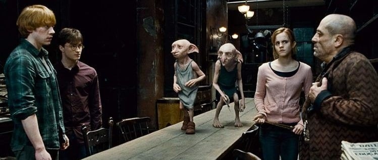 No livro Harry Potter e as Relíquias da Morte, a figura de Kreacher, o elfo doméstico da família Black, tem um papel importante. Ele não só tem um papel crucial na obtenção da Horcrux, mas também representa a mudança no relacionamento dos elfos com os bruxos.