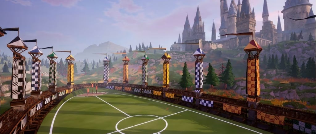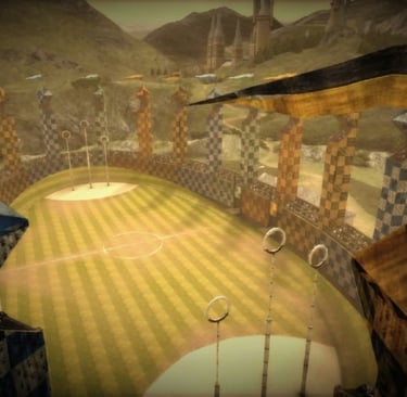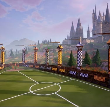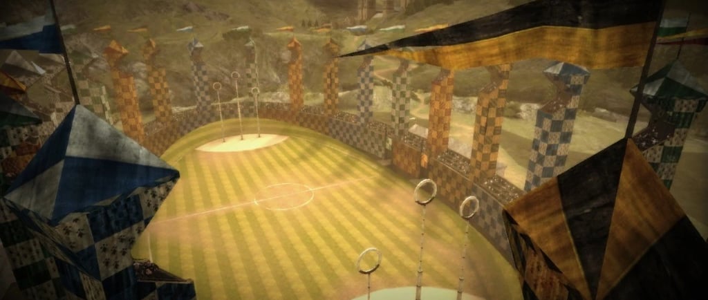 O campo de Quadribol é grande e imponente, com três aros de gol elevados em cada extremidade. A cada partida, os jogadores se posicionam sobre suas vassouras voadoras, tornando o esporte algo completamente único, impossível de ser reproduzido em um campo de futebol comum. A habilidade de voar adiciona uma camada extra de complexidade ao jogo, tornando-o não só um teste de destreza física, mas também de coragem, estratégia e resistência.