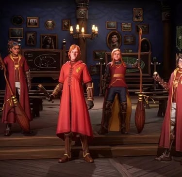 Grifinória: Com a coragem e determinação típicas da casa, a equipe de Grifinória é conhecida por sua atitude destemida no campo. Seus jogadores, como Harry Potter e Oliver Wood, buscam a vitória com garra e espírito de equipe.